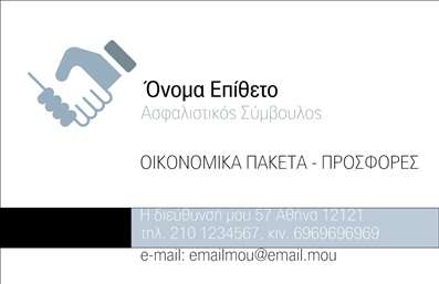 Η συγκεκριμένη επαγγελματική κάρτα είναι σχεδιασμένη με πρωτοτυπία και επαγγελματισμό, συνδυάζοντας κομψά στοιχεία που καθιστούν την παρουσία σας ανεπανάληπτη. Το χρώμα φόντου, σε αποχρώσεις του μπλε και του λευκού, επικοινωνεί εμπιστοσύνη και σοβαρότητα, χαρακτηριστικά που είναι απαραίτητα στον τομέα των ασφαλειών. Η διάταξη είναι καθαρή και οργανωμένη, καθιστώντας εύκολο το διάβασμα των στοιχείων σας.