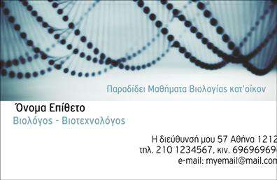 Ο σχεδιασμός της κάρτας αντανακλά με απόλυτη επιτυχία τον επαγγελματισμό και την αξιοπιστία του επαγγέλματος του βιολόγου, δίνοντάς σας την δυνατότητα να ξεχωρίσετε σε κάθε πλαίσιο συνομιλίας. Στη δεξιά πλευρά της κάρτας, μπορείτε να προσθέσετε στοιχεία όπως το όνομά σας, το τηλέφωνο επικοινωνίας και το λογότυπό σας, καθιστώντας τη κάρτα λειτουργική και προσαρμόσιμη στις δικές σας ανάγκες.