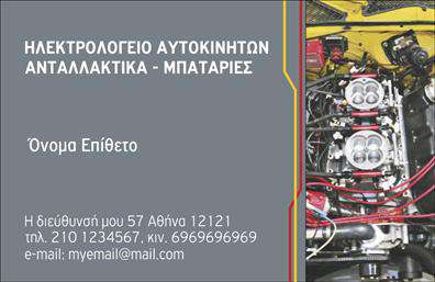 Επαγγελματική κάρτα για Ελαστικά: Αυτή η εντυπωσιακή επαγγελματική κάρτα σχεδιάστηκε για να αναδείξει την επιχείρησή σας στον τομέα των ελαστικών με στυλ και επαγγελματισμό. Το μοντέρνο σχέδιο συνδυάζει μια κομψή παλέτα χρωμάτων, με ένα ελκυστικό background που ενισχύει τη συνολική αισθητική της κάρτας.