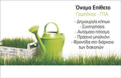 Η επαγγελματική κάρτα σας θα λειτουργήσει ως ο καλύτερος πρεσβευτής των υπηρεσιών σας στον κλάδο των κήπων, προβάλλοντας την εμπειρία και την αφοσίωσή σας. Επιπλέον, με την επαγγελματική σας κάρτα, θα ξεχωρίσετε από τον ανταγωνισμό και θα αφήσετε μια θετική εντύπωση στους πελάτες σας.