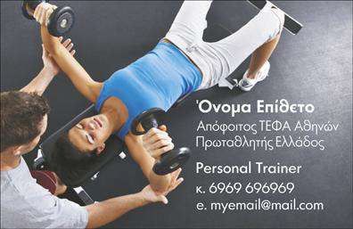 Η κάρτα μπορεί εύκολα να προσαρμοστεί με τα στοιχεία σας, όπως το όνομά σας, αριθμό τηλεφώνου και λογότυπο, συνθέτοντας έτσι μια προσωπική και επαγγελματική ταυτότητα. Με αυτόν τον τρόπο, προβάλλει αποτελεσματικά τις υπηρεσίες σας και αναδεικνύει την εξειδίκευσή σας στα Personal Trainers.
