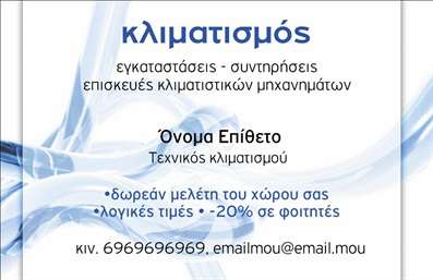 Επαγγελματική κάρτα για Υδραυλικοί Ψύξη Θέρμανση