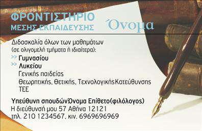 Επαγγελματικές κάρτες - Φροντιστήρια