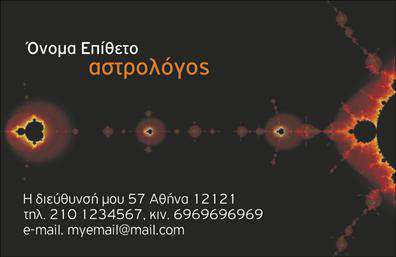 Η διάταξή της είναι προσεγμένη, με σαφήνεια και ισορροπία ανάμεσα στις πληροφορίες. Η γραμματοσειρά είναι μοντέρνα και ευανάγνωστη, ιδανική για την ανάδειξη του ονόματος και της ειδικότητας του επαγγελματία. Τα background στοιχεία ενισχύουν την αίσθηση της διαίσθησης και της πνευματικότητας, προσφέροντας έτσι ένα αρμονικό σύνολο.