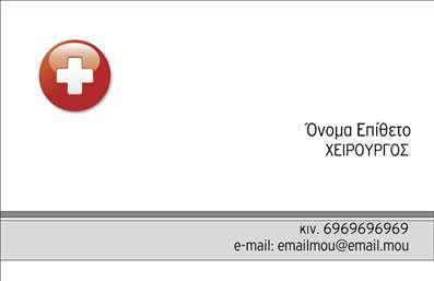 Επαγγελματική κάρτα για Χειρουργούς: Η κάρτα αυτή αντανακλά την αριστεία και τον επαγγελματισμό που κάθε χειρουργός επιθυμεί να προβάλλει. Με φόντο σε κομψές αποχρώσεις του μπλε και του λευκού, οι χρωματικές επιλογές αποπνέουν καθαρότητα και εμπιστοσύνη, στοιχεία θεμελιώδη για το ιατρικό επάγγελμα. Η διάταξη είναι προσεγμένη, με την επωνυμία και τα στοιχεία επικοινωνίας να διαπρέπουν σε καθαρή γραμματοσειρά, εψίλην γωνία και ευανάγνωστα κείμενα.