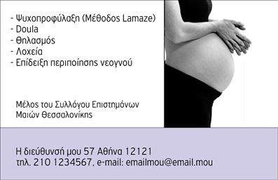 Επιπλέον, η κάρτα αυτή μπορεί να προβάλει τις υπηρεσίες ή τα προϊόντα της επιχείρησής σας, καθιστώντας την καταλληλότερη για την προβολή των υπηρεσιών υποστήριξης στον τοκετό ή άλλων σχετικών προτάσεων.