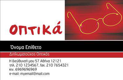 Επαγγελματική κάρτα για Οπτικός: Ανακαλύψτε τον ιδανικό σχεδιασμό για τις επαγγελματικές κάρτες σας με ένα εντυπωσιακό και μοντέρνο template που θα τραβήξει την προσοχή. Η κάρτα αυτή αναδεικνύει τα φωτεινά χρώματα και την κομψότητα της, συνδυάζοντας απαλά τόνοι με έντονες γραμμές, επιτυγχάνοντας μια ισορροπία που ενσωματώνει την επαγγελματική αισθητική. Οι σαφείς και ευανάγνωστες γραμματοσειρές και η προσεκτική διάταξη των στοιχείων εξασφαλίζουν ότι όλες οι πληροφορίες είναι άμεσα διαθέσιμες.